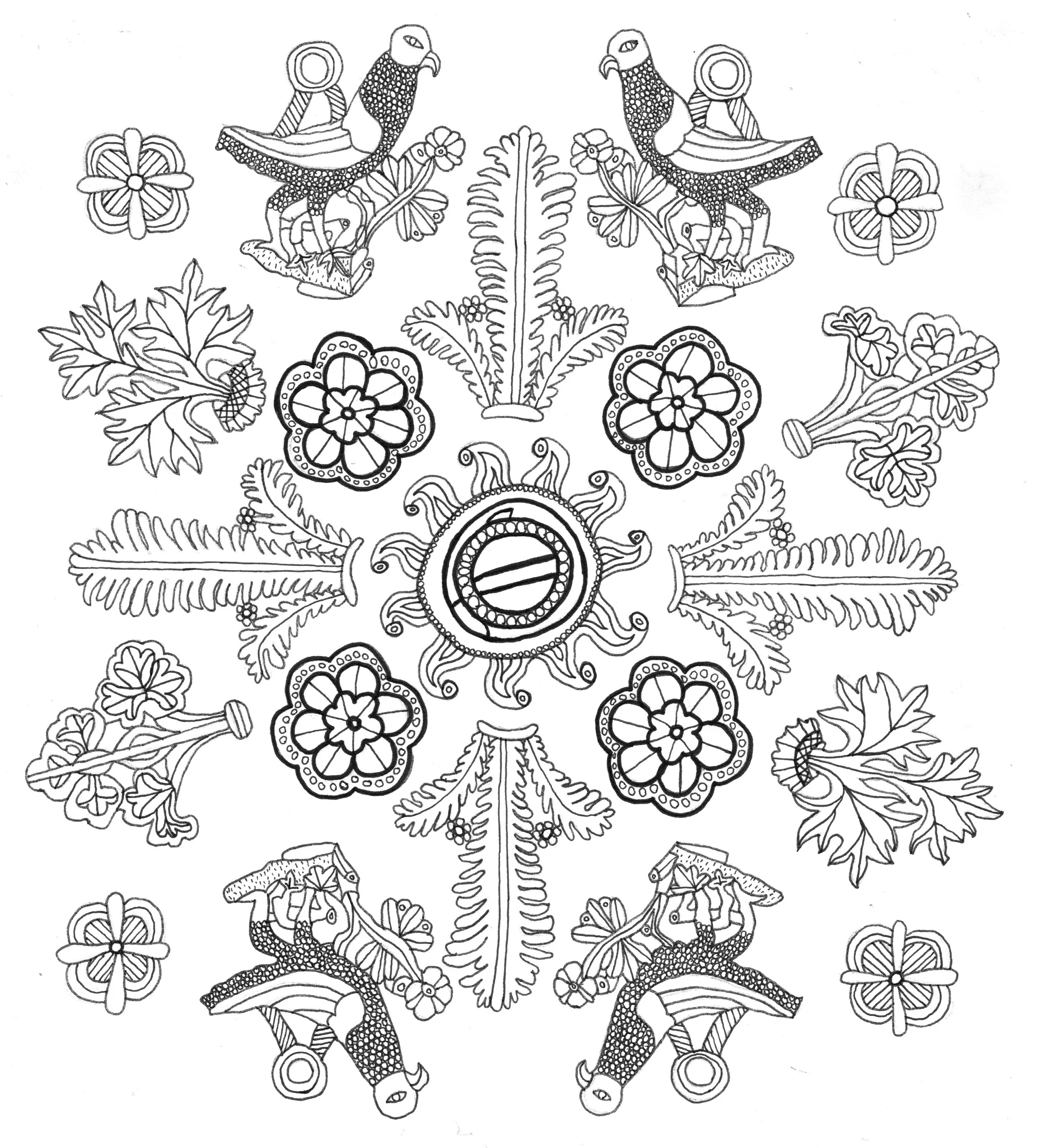 These colouring page resources were created by Ellen Siebel-Achenbach during her undergraduate internship on the medieval badges project. The three pages depict a variety of medieval badges imagery, including the crucifix scene, flora & fauna, and angels.